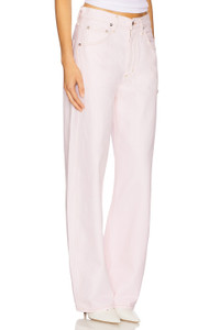 - 100% regenerative cotton - Machine wash - Zip fly with button closure.5-pocket design - Blush denim fabric.22" at the knee and narrows to 19" at the leg opening - Revolve Style No. AGOL-WJ697 - Manufacturer Style No. A197D-1183