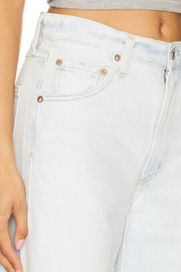 - 67% regenerative cotton 22% lyocell 11% post consumer recycled cotton - Machine wash cold - Zip fly and button closure.5-pocket design - Midweight rigid denim fabric with frayed hems.20" at the knee and 20" at the leg opening - Revolve Style No. AGOL-WJ699 - Manufacturer Style No. A238-1535