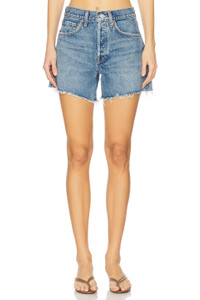 - 67% regenerative cotton 22% lyocell 11% post consumer recycled cotton - Made in Turkey - Machine wash - Button fly closure.5-pocket styling with raw hem - Intentional fading and light whiskering - Shorts measure approx 14" in length - Revolve Style No. AGOL-WF162 - Manufacturer Style No. A9010-1535