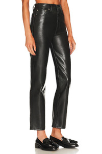- 50% recycled leather 30% polyurethane 10% viscose 10% poly - Dry clean only - Zip fly with button closure.5-pocket design.15" at the knee narrows to 13" at the leg opening - Made in US - Featuring a flattering high-rise waist with a close-fitting top block through the hips, an easy, classic straight leg. - Revolve Style No. AGOL-WP8 - Manufacturer Style No. A164-1285