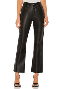 - 50% recycled leather 30% polyurethane 10% viscose 10% poly - Made in USA - Dry clean only - Zip fly with button closure.5-pocket styling - Leather fabric.14" at the knee breaks to 15" at the leg opening - Revolve Style No. AGOL-WP18 - Manufacturer Style No. A181-1285