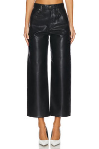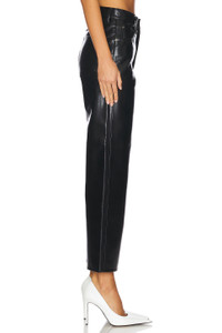- 50% recycled leather 30% polyurethane 10% viscose 10% polyester - Made in USA - Dry clean only - Fly zip with button closure.5-pocket styling - Midweight faux leather fabric.18" at the knee narrows to 16" at the leg opening - Revolve Style No. AGOL-WP69 - Manufacturer Style No. A206-1285