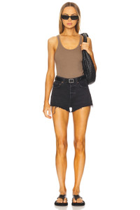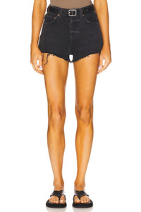 - 67% organic cotton 22% lyocell 11% post consumer recycled cotton - Made in Turkey - Machine wash - Button fly closure.5-pocket styling - Intentional fading and distressing - Midweight denim fabric with raw cut hem - Shorts measure approx 12.5" in length - Revolve Style No. AGOL-WF168 - Manufacturer Style No. A9237-1683