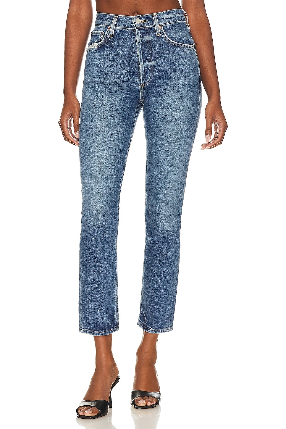 - AGOLDE presents Riley Long High Rise Straight in Moor - Featuring a button fly, classic 5-pocket styling, and distressed details with light fading & whiskering - A must-have staple for your closet - .88% cotton 11% post consumer recycled cotton 1% elastane - Made in Turkey - Machine wash - Button fly.5-pocket styling - Intentionally distressed trim.14" at the knee narrows to 12" at the leg opening - Revolve Style No. AGOL-WJ521 - Manufacturer Style No. A9090-1554
