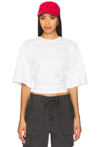 - 100% cotton - Made in USA of imported materials - Machine wash - Pull-on styling - Ruched sides - Ribbed neckline trim - Midweight jersey fabric - Garment is made with a semi-sheer fabric, undergarments can show through - Revolve Style No. AGOL-WS319 - Manufacturer Style No. - A7392-1521