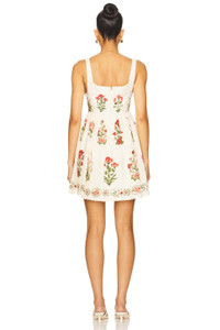 - Self: 100% linen Lining: 100% cotton - Machine wash - Fully lined - Hidden back zipper closure - Side seam pockets - Square neckline - Midweight linen fabric with faux pearl trim - Revolve Style No. AGUR-WD44 - Manufacturer Style No. 19254