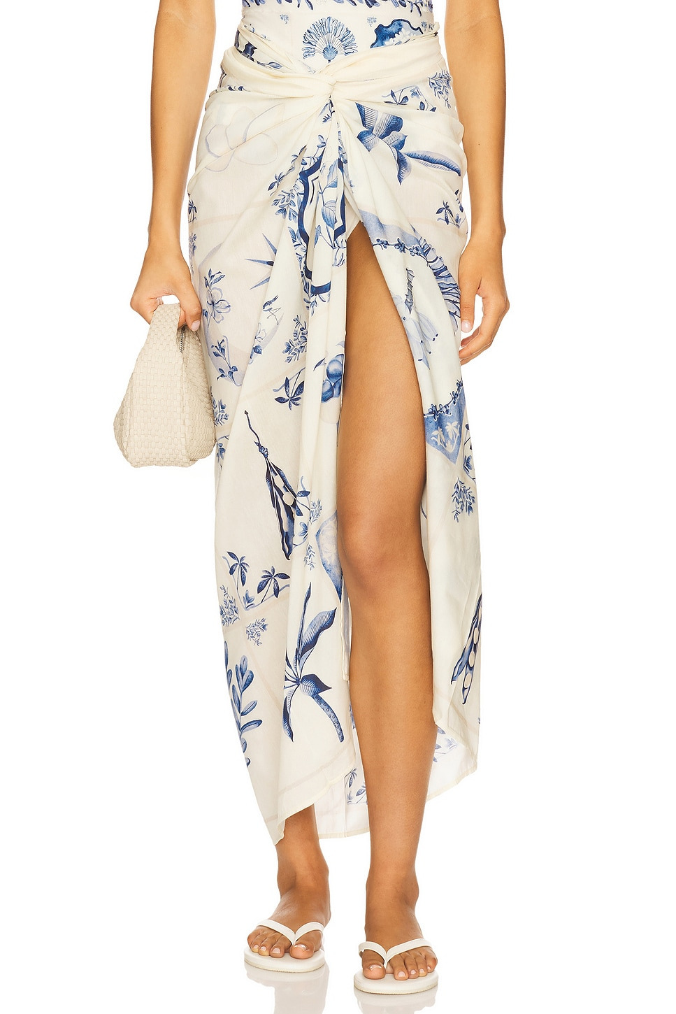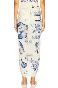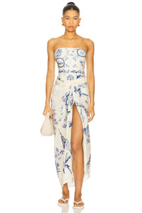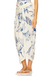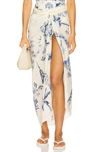 - 70% cotton 30% silk - Machine wash - Unlined - Wrap styling - Lightweight linen fabric - Item not sold as set - Skirt measures approx 43" in length - Revolve Style No. AGUR-WQ33 - Manufacturer Style No. 19207