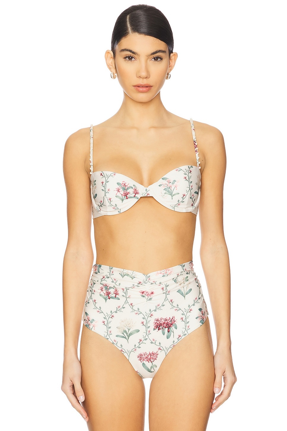 - Self: 81% recycled polyester 19% elastane Lining: 78% polyamide 22% elastane - Made in Colombia - Hand wash - Back S-hook closure - Unpadded cups with underwire - Faux pearl detail at shoulder straps - Item not sold as a set - Revolve Style No. AGUR-WX29 - Manufacturer Style No. 17611