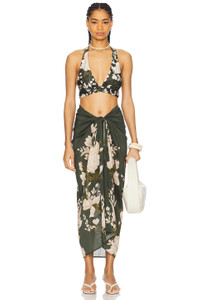 - Self: 81% recycled polyester 19% elastane Lining: 78% polyamide 22% elastane - Made in Colombia - Hand wash - Halterneck and back tie-up closures - Unpadded cups - Plunging V-neckline - Item not sold as a set - Revolve Style No. AGUR-WX34 - Manufacturer Style No. 18584