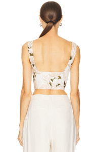 - 100% linen - Machine wash - Front hook and eye closure - Floral print throughout - Front self-tie bow accent - Midweight linen fabric - Item not sold as a set - Revolve Style No. AGUR-WS13 - Manufacturer Style No. 19134