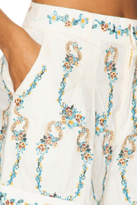- 100% linen - Made in Colombia - Machine wash - Zip fly with hook and bar closure.4-pocket design - Item not sold as set - Linen fabric with lightly pleated detail and tonal 3D florals - Shorts measure approx 15" in length - Revolve Style No. AGUR-WF1 - Manufacturer Style No. 15029