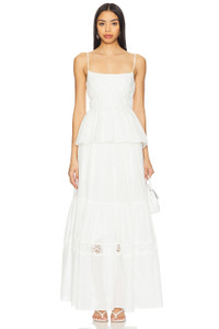 - 100% cotton - Made in China - Hand wash cold - Hidden side zip with hook and eye closure - Adjustable shoulder straps - Flared waist - Midweight poplin fabric - Item not sold as a set - Revolve Style No. AJER-WS31 - Manufacturer Style No. 25CR1105