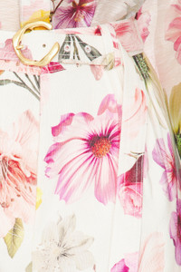 - Self: 55% linen 45% viscose Lining: 100% cotton - Dry clean only - Zip fly with hook and bar closure Detachable belted accent - Angled side seam pockets - Cuffed hem - Floral design throughout - Midweight linen fabric Item not sold as a set - Shorts measure approx 14.5" in length - Revolve Style No. AJER-WF5 - Manufacturer Style No. 25SU3040