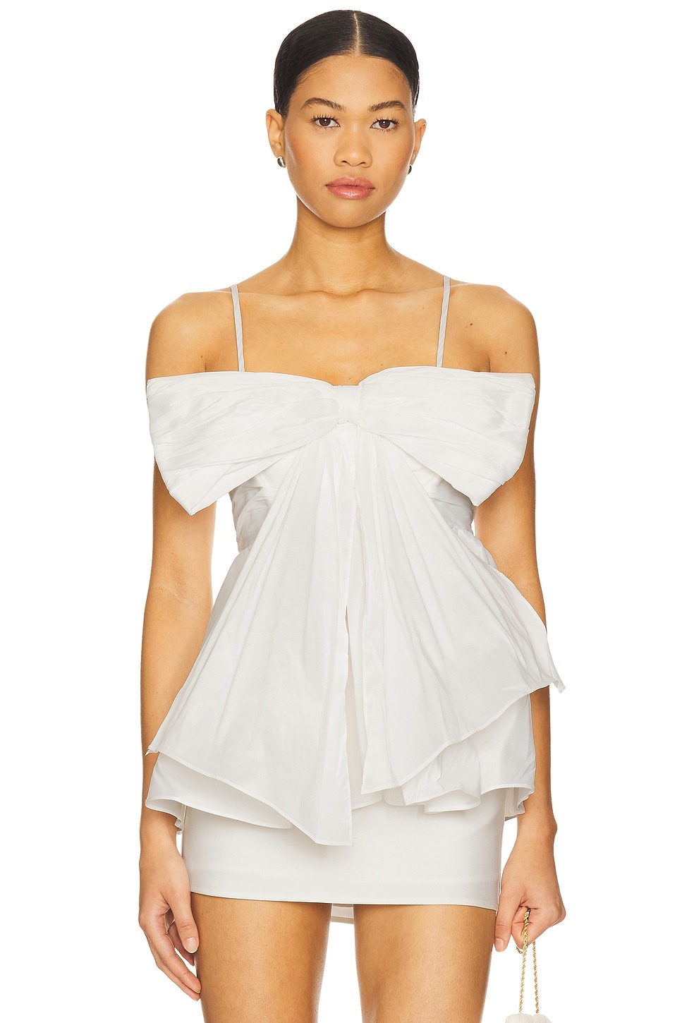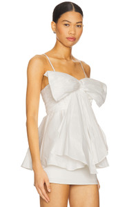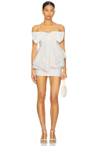 - Self: 100% polyester Lining: 100% cotton - Dry clean only - Hidden back zipper closure - Adjustable shoulder straps - Bow accent - Pleated poplin fabric - Revolve Style No. AJER-WS36 - Manufacturer Style No. 25SU1128