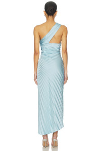 - Woven textile - Imported - Hand wash recommended - Partially lined - Hidden side zip with hook and eye closure - Lightweight pleated satin fabric - One-shoulder styling - Revolve Style No. ALX-WD603 - Manufacturer Style No. 6DRES02935