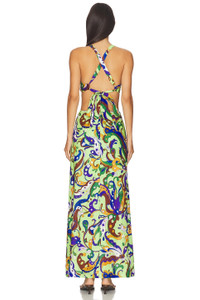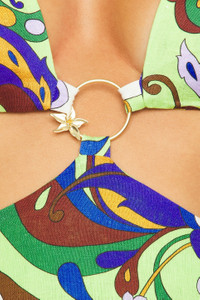 - Self: 100% flax Lining: 100% cotton - Hand wash - Partially lined - Hidden back zip with tie closure - Front gold-tone ring accent with floral detailing - Wrap around cut-out - Midweight linen fabric - Revolve Style No. AMAI-WD58 - Manufacturer Style No. 1940D