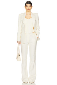 - Self: 50% virgin wool 27% cotton 23% viscose Lining: 100% viscose - Made in China - Dry clean only - Zip fly with hook and bar clasp closure.4-pocket styling - Low-rise fit - Twill fabric Item not sold as a set.16" at the knee breaks to 20" at the leg opening - Revolve Style No. APEF-WP58 - Manufacturer Style No. P0106SS25