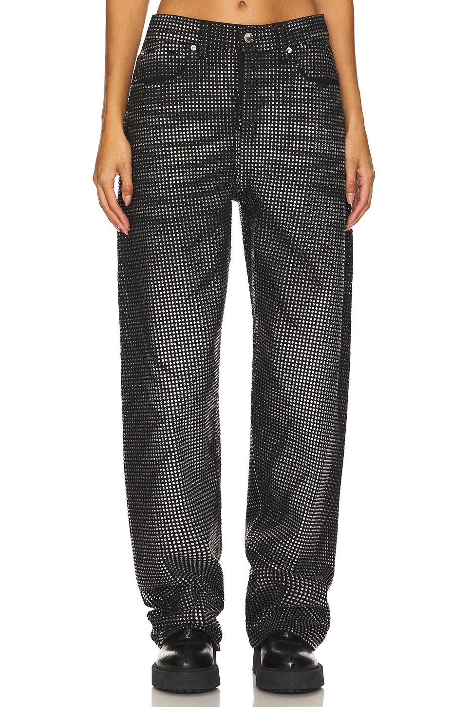 - 100% cotton - Made in China - Spot clean only - Zip fly with button closure.5-pocket styling - Crystal-embellished rigid denim.22" at the knee and 22" at the leg opening - Revolve Style No. AWAR-WP29 - Manufacturer Style No. 1WC3244376