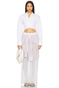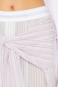 - Self: 100% silk Contrast Fabric: 64% polyamide 26% polyester 10% elastane - Dry clean only - Pull-on styling - Elasticized waistband with logo detailing - Attached layered shirt design at waist with front knot closure - Lightweight crepe fabric.26.5" at the knee narrows to 24" at the leg opening - Revolve Style No. AWAR-WP55 - Manufacturer Style No. 1WC2254829