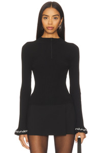 - 88% polyamide, 12% elastane - Made in China - Professional dry clean only - Pull-on styling - Lightweight ribbed knit fabric - Font along cuffs - Mockneck styling - Revolve Style No. AWAR-WK74 - Manufacturer Style No. 4KC1261046