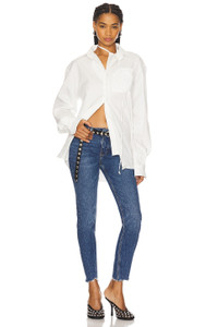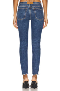 - 52% cotton 47% lyocell 1% elastane - Machine wash - Zip fly with button closure.5-pocket design - Intentional fading and light whiskering - Intentional distressing with raw cut hem and waistband - Heavyweight denim fabric.12" at the knee narrows to 8.5" at the leg opening - Revolve Style No. AWAR-WJ61 - Manufacturer Style No. 4DC3254753