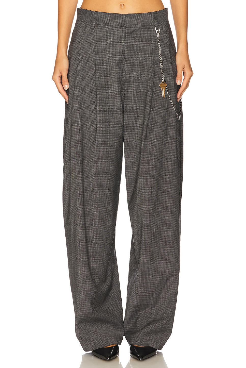 - Self: 86% wool 10% polyester 4% elastane Lining: 100% viscose - Dry clean only - Zip fly with hook and bar closure.4-pocket styling - Detachable chain - Lightweight pleated suiting fabric - Item not sold as set - Revolve Style No. AWAR-WP60 - Manufacturer Style No. 1WC3254871