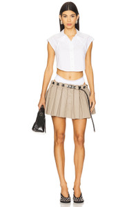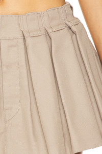 - Self: 60% cotton 40% polyester Pocket Lining: 100% cotton Contrast Fabric: 65% polyester 35% cotton - Dry clean only - Unlined - Front zipper with hook and bar closure - Side and back welt pockets - Midweight twill fabric with pleated design - Skirt measures approx 12" in length - Revolve Style No. AWAR-WQ21 - Manufacturer Style No. 1WC2255320