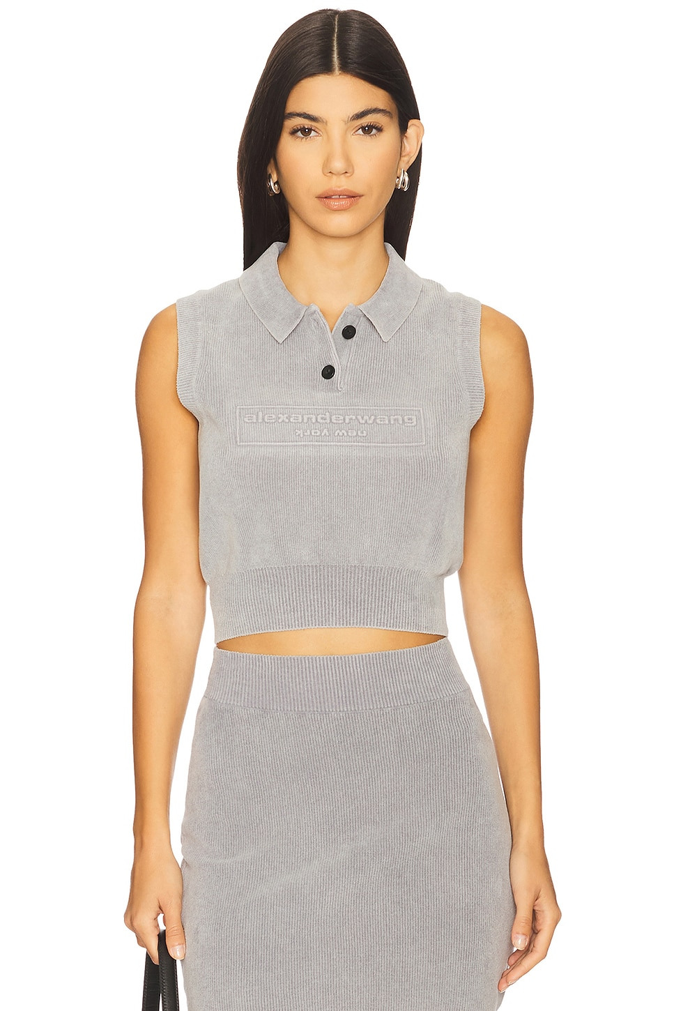- Self: 88% cotton 10% polyamide 2% elastane Trim: 89% cotton 10% polyamide 1% elastane - Dry clean only - Quarter button closure - Front logo - Midweight ribbed knit fabric - Item not sold as set - Revolve Style No. AWAR-WS206 - Manufacturer Style No. 1KC3251056