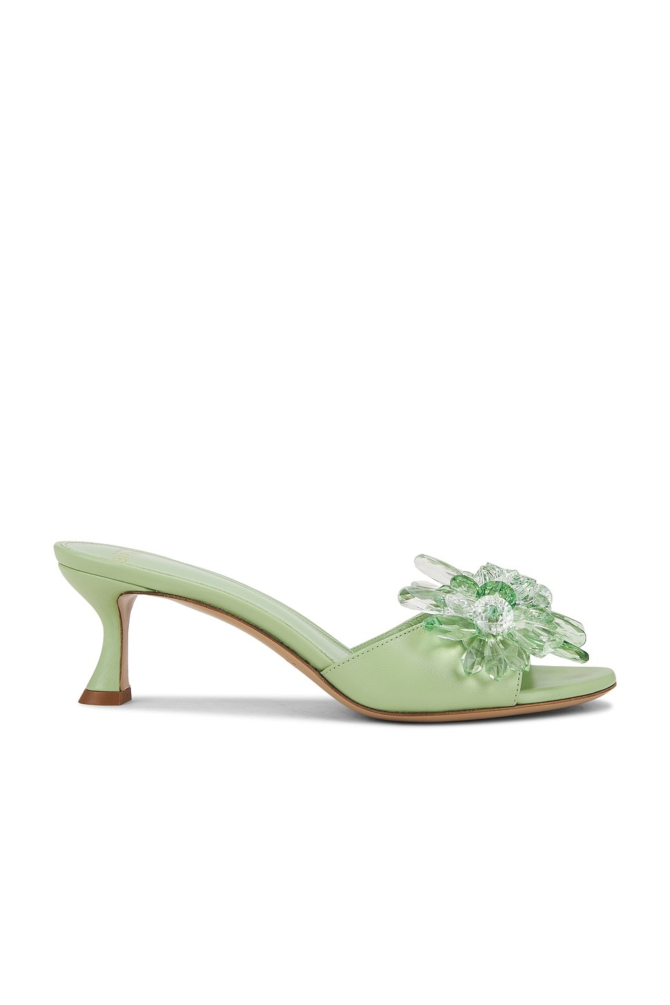 - Leather upper with leather sole - Slip-on styling - Cushioned leather footbed and lining - Clear and green-toned crystal accents at strap - Almond toe - Sculptural heel - Approx 60mm/ 2.36 inch heel - Revolve Style No. AEBR-WZ225 - Manufacturer Style No. B0605800020002