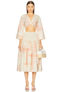 - 95% cotton 5% elastane - Dry clean only - Front wrap self-tie closure - Abstract design throughout - Midweight broadcloth fabric - Item not sold as a set - Revolve Style No. AXIS-WS444 - Manufacturer Style No. A1250137-0473