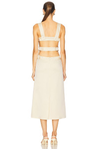 - Self: 78% acetate 22% viscose Lining: 100% polyester - Dry clean - Fully lined - Partial hidden back zipper closure with buttoned straps - Midweight charmeuse fabric with back vent - Revolve Style No. AXIS-WD904 - Manufacturer Style No. A2250402-0605