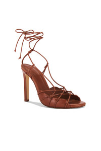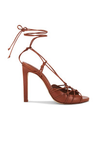 - Leather upper with leather sole - Made in Brazil - Ankle wrap tie closure - Leather footbed and lining - Strappy design - Almond toe with stiletto heel - Approx 100mm/ 4 inch heel - Revolve Style No. AXIS-WZ4 - Manufacturer Style No. A42521011501