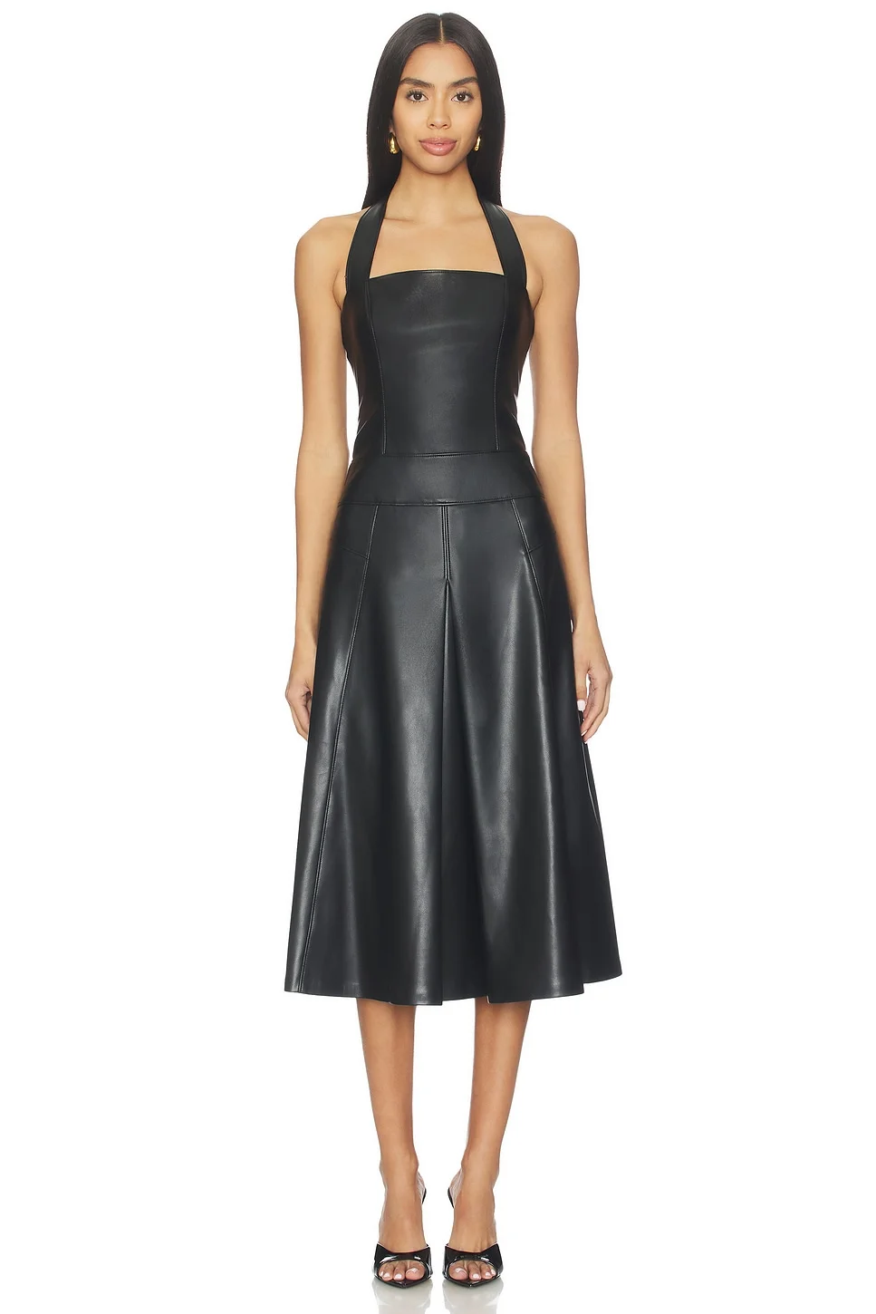 - Self: 100% polyurethane Lining: 100% polyester - Made in China - Dry clean only - Unlined - Hidden back zip and eyelet closure - Faux leather fabric - Revolve Style No. AXIS-WD933 - Manufacturer Style No. A3250438-0818
