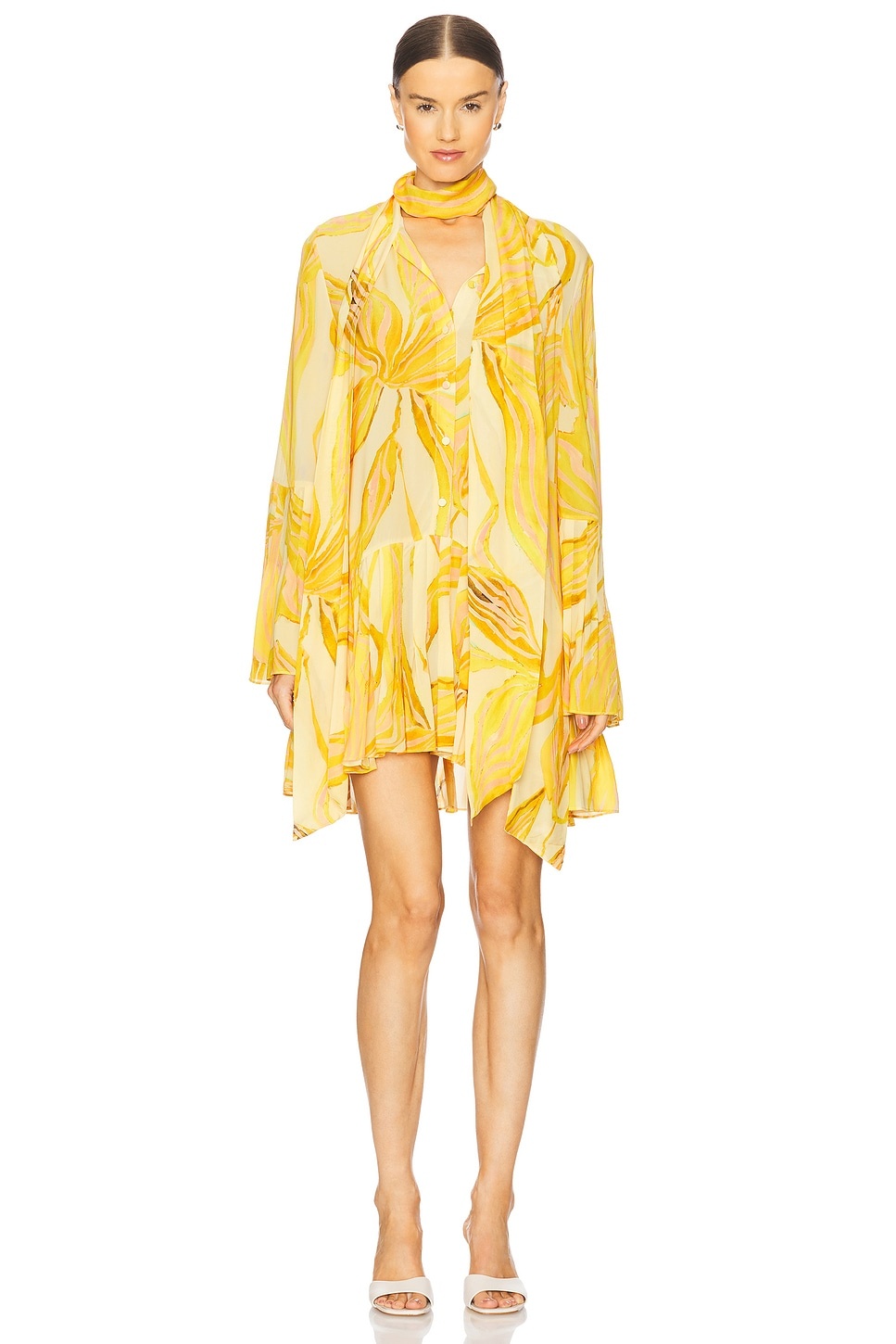 - 100% viscose - Made in China - Dry clean only - Partially lined - Front button closure - Chiffon fabric with attached neck tie - Revolve Style No. AXIS-WD844 - Manufacturer Style No. A4250310-0051