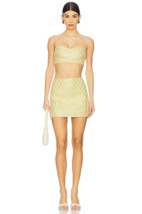 - Textured crepe textile - Imported - Dry clean recommended - Fully lined - Hidden back zipper closure - Textured crepe fabric - Item not sold as set - Skirt measures approx 14" in length - Revolve Style No. AXIS-WQ153 - Manufacturer Style No. A1250921-0448