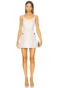 - Self: 68% cotton 17% polyester 7% poly cotton 6% polyamide 2% metallized polyester Lining: 95% polyester 5% elastane Contrast Fabric: 92% polyester 8% elastane - Dry clean only - Fully lined - Adjustable shoulder straps with front wrap accent - Front slip pocket styling - Midweight jacquard fabric - Revolve Style No. AXIS-WD875 - Manufacturer Style No. A1250337-0455