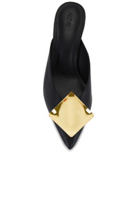 - Leather upper with leather sole - Made in Brazil - Slip-on styling - Leather footbed and lining - Gold-tone hardware at toe - Pointed toe with flare heel - Approx 65mm/ 2.5 inch heel - Revolve Style No. AXIS-WZ9 - Manufacturer Style No. A42522011301