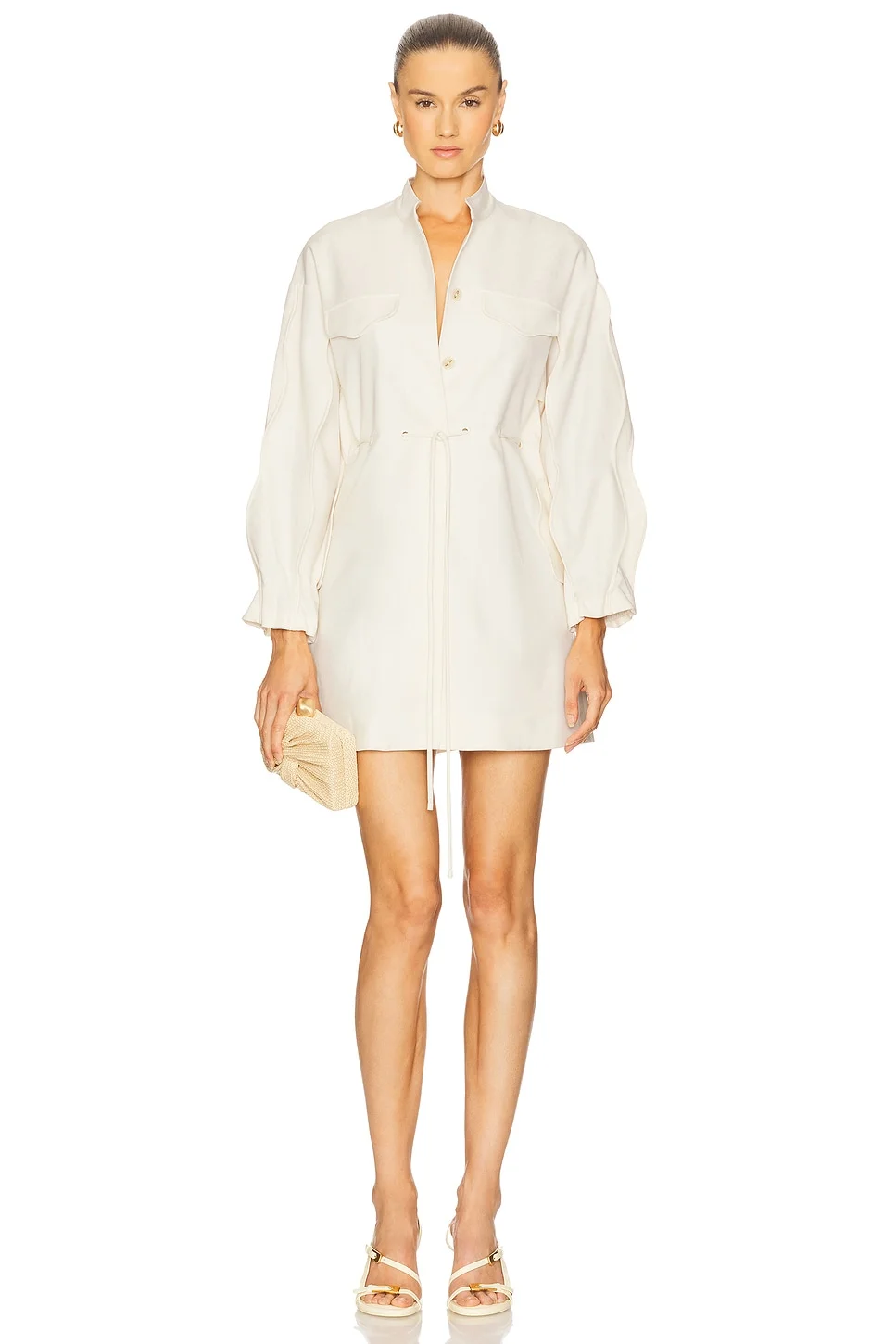 - Self: 80% polyester 20% cotton Lining: 100% polyester - Dry clean - Fully lined - Front button closure with drawstring tie at waist - Faux flap pockets at breast with dual side seam pockets - Twill fabric with elasticized cuffs - Revolve Style No. AXIS-WD917 - Manufacturer Style No. A2250312-0640