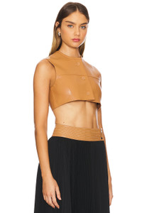 - Self: 100% polyurethane Lining: 100% polyester - Made in China - Dry clean only - Front button closure - Adjustable back strap - Faux leather front with tonal crepe on back - Item not sold as a set - Revolve Style No. AXIS-WS418 - Manufacturer Style No. A3240119-9641