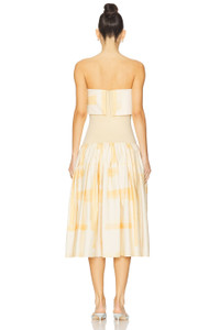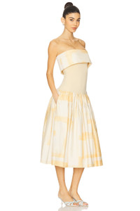 - Self: 95% cotton 5% elastane Contrast Fabric: 54% viscose 45% nylon 1% elastane - Dry clean only - Unlined - Concealed back zipper closure - Side pockets - Midweight crepe fabric with ribbed knit bodice - Neckline to hem measures approx 41" in length - Revolve Style No. AXIS-WD869 - Manufacturer Style No. A1250439-0414