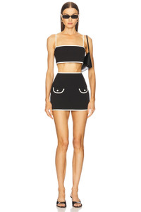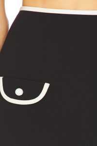 - Self: 88% polyester 12% elastane Lining: 95% polyester 5% elastane - Dry clean only - Unlined - Hidden back zipper closure - Dual front faux pockets - Ponte fabric with contrast trim - Item not sold as a set - Skirt measures approx 14" in length - Revolve Style No. AXIS-WQ161 - Manufacturer Style No. A1250914-0400