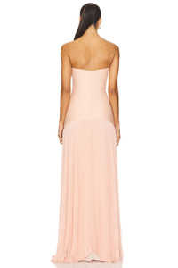 - Self: 83% rayon 17% nylon Lining: 100% polyester - Dry clean only - Fully lined - Hidden back zipper closure - Boned bodice - Midweight crepe bodice with contrast chiffon skirt - Revolve Style No. AXIS-WD901 - Manufacturer Style No. A2250420-0674