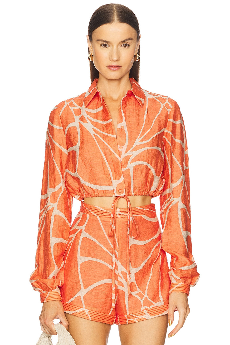 - 66% viscose 34% polyamide - Dry clean only - Front button closure with drawstring hem - Lightweight organza fabric with button cuffs - Item not sold as a set - Revolve Style No. AXIS-WS437 - Manufacturer Style No. A1250135-0471