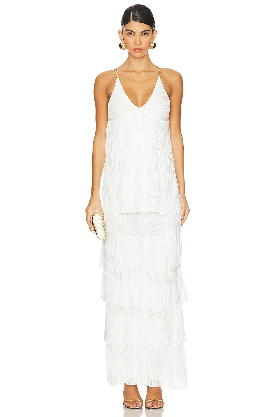- 100% viscose - Made in China - Dry clean only - Fully lined - Pull-on styling - Gold-tone shoulder straps - Heavyweight tiered plisse fabric - Revolve Style No. AXIS-WD835 - Manufacturer Style No. A3240440-9702