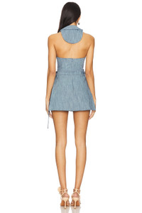 - Self: 75% cotton 18% linen 7% polyester Lining: 100% cotton - Made in China - Dry clean only - Back zipper with snap button closure - Attached waist tie - Halterneck styling - Revolve Style No. AXIS-WR206 - Manufacturer Style No. A4250702-0096