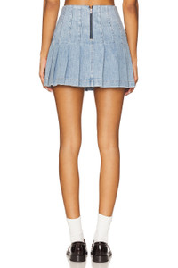 - Self: 100% cotton Lining: 98% polyester 2% elastane - Dry clean - Fully lined - Exposed side zipper closure - Structured denim fabric with pleated styling - Skirt measures approx 14" in length - Revolve Style No. ALI-WQ306 - Manufacturer Style No. CD507117314