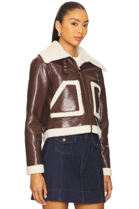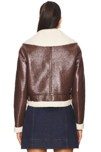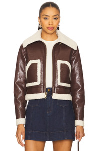 - Faux fur: 100% polyester, Faux leather: 100% polyurethane - Dry clean only - Front zipper closure - Aviator jacket - Faux shearling interior - Glossy vegan leather - Cropped with front pockets - Revolve Style No. ALI-WO269 - Manufacturer Style No. CC508Y07403