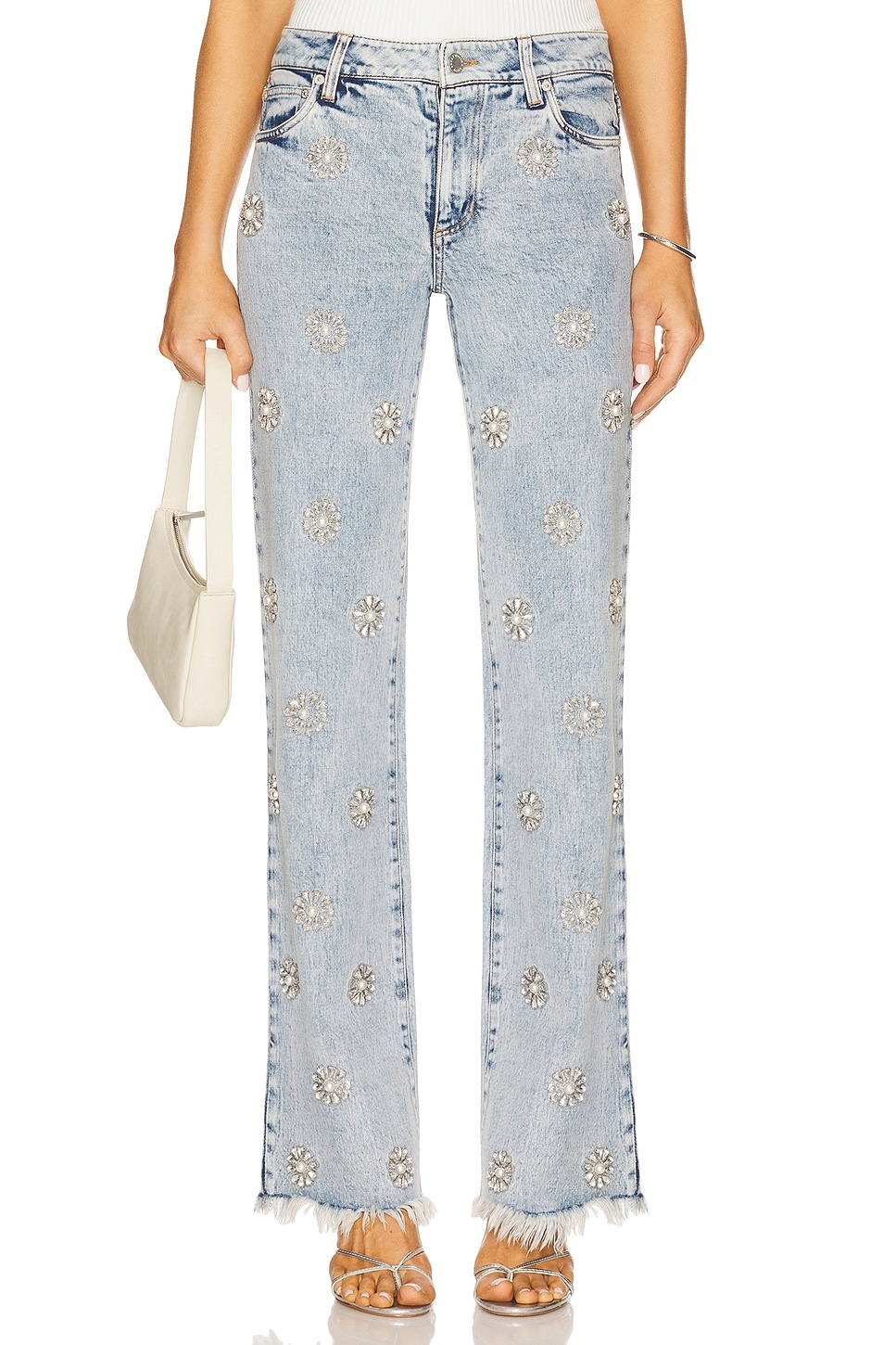 - Self: 98% cotton 2% elastane Lining: 97% cotton 3% elastane - Dry clean only - Zip fly with button closure.5-pocket styling - Embellished floral detailing - Structured denim fabric.17" at the knee breaks to 19" at the leg opening - Revolve Style No. ALI-WJ28 - Manufacturer Style No. CD503301132