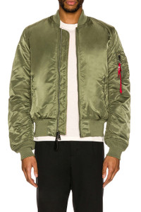 - Self 1: 100% nylon Fill: 100% poly Self 2: 99% poly 1% spandex - Made in China - Dry clean only - Front zipper closure - Side slant pockets with snap button closures and interior welt pockets - Rib knit collar, cuffs and hem - Shirred sleeves Utility pocket on sleeve with signature red ribbon pull - Reversible styling - Revolve Style No. ALPF-MO64 - Manufacturer Style No. MJM44530C1