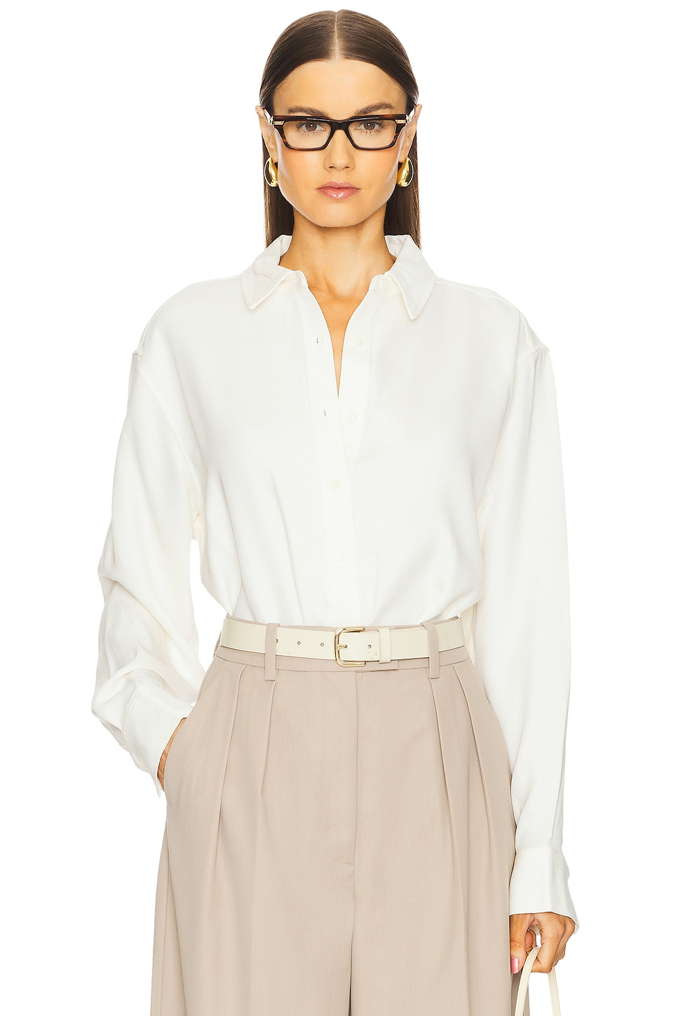 - 96% viscose 4% spandex - Made in China - Dry clean only - Front button closure - Buttoned cuffs - Lightweight crepe fabric - Revolve Style No. ANIN-WS370 - Manufacturer Style No. A-07-10840-IVY26